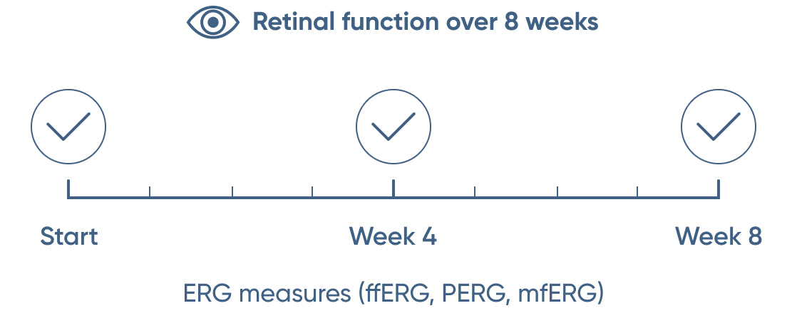 This study examined retinal responses in participants using a portable light device over an eight-week period. Retinal function was measured at several points during the study and compared with a placebo (dim red light) condition. Across the study period, no meaningful differences were observed between participants using Luminette® and those using the placebo device.