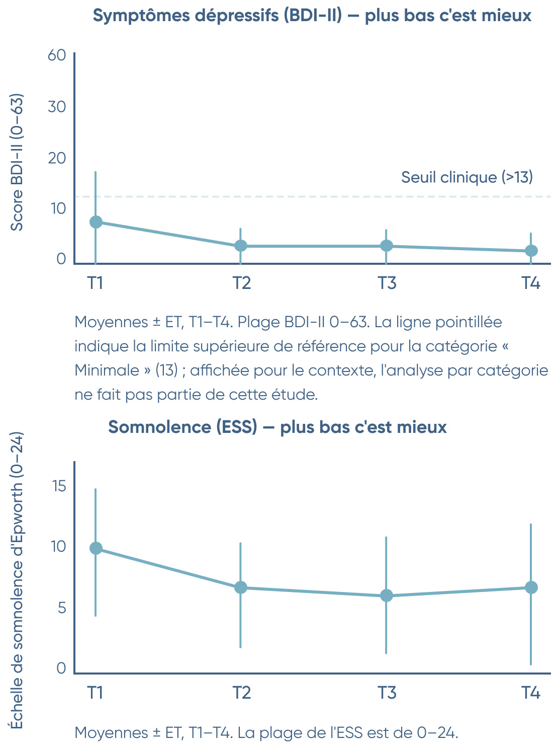 Cette étude a suivi 114 femmes en postpartum pendant six semaines, durant lesquelles elles ont surveillé leur repos nocturne et leur bien-être quotidien. Les participantes qui ont intégré des séances Luminette® en complément de conseils de bien-être ont rapporté des améliorations plus importantes de la qualité de sommeil perçue que celles suivant leurs routines habituelles. Ces tendances positives se sont maintenues pendant la période de suivi, et les séances ont été globalement bien acceptées.
